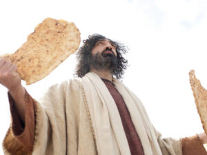 Jesus dankt inmitten seiner Trauer und vor einem Wunder, Matthäus 14,19